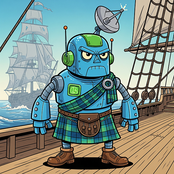 It was not the song of the wind in the rigging but Stephen's new curiosity, a mechanical Scot, which he had acquired after a tense evening of piquet in one of the lesser royal establishments. It had bested the better known Mechanical Turk in a game of chess inside four moves, the last move consisting of a head-butt.